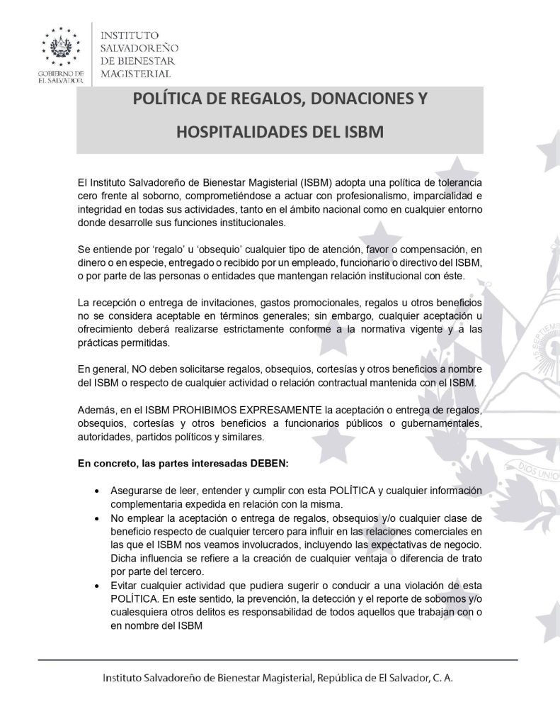 Política de Regalos donaciones y hospitalidades